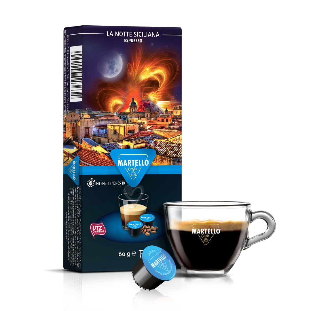 Durch eine Kombination aus der speziell designten Kapsel in Zusammenhang mit unseren Martello-Kapselmaschinen werden die für den Kaffee charakteristischen Aromen im optimalen Wasserfluss als perfekt eingespieltes System extrahiert.​
